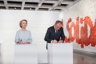 Gdańsk, ECS. Konferencja prasowa premiera Donalda Tuska i przewodniczącej KE Ursuli von der Leyen