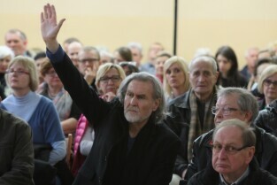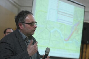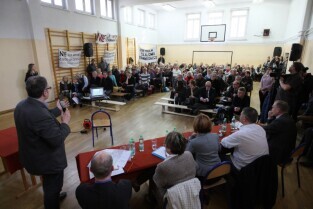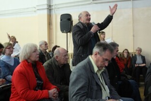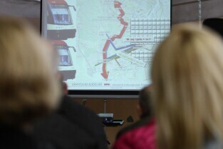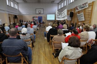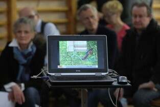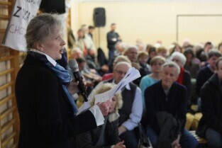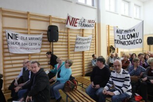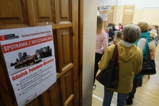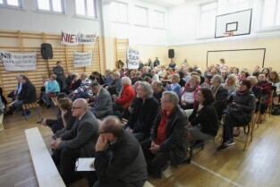 Gdańsk Szkoła podstawowa nr 17. Trzecie spotkanie urzędników i architektów z Mostów Katowice z mieszkańcami w sprawie przebiegu ulicy Nowej Politechnicznej.