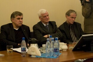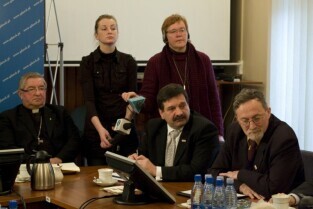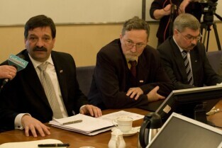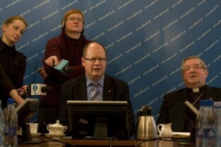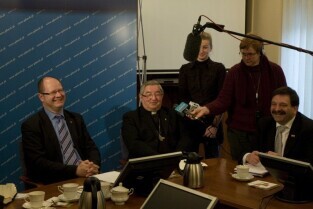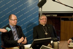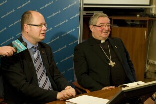 Konferencja prasowa poświęcona powstaniu Komitetu Koordynacyjnego ds. obchodów 30-lecia Porozumień Sierpniowych oraz powstania "Solidarności". Nz. od lewej: Prezydent Gdańska Paweł Adamowicz, abp Sławoj Leszek Głódź, Przewodniczący NSZZ Solidarność Janusz Śniadek