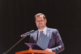 Gdańsk, aMuz. Koncert Jubileuszowy z okazji 40-lecia Gdańskiego Chóru Nauczycielskiego. Nz. radny Maximilian Kieturakis