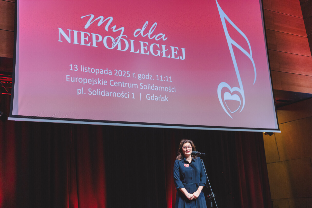 Gdańsk, ECS. Koncert My dla Niepodległej. Nz. prezydent Gdańska, Aleksandra Dulkiewicz