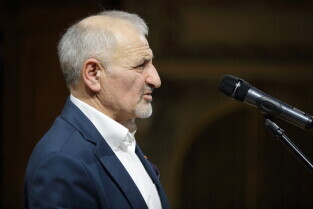 Gdańsk. Ormianie dla Gdańszczan. Koncert dla uczczenia 150. rocznicy urodzin Vardapeta Komitasa, twórcy Ormiańskiej Szkoły Kompozytorskiej. Nz. Gagik Parsamian - prezes Związku Ormian w Gdańsku.
