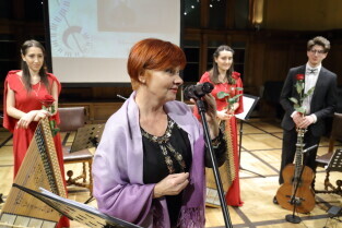 Gdańsk. Ormianie dla Gdańszczan. Koncert dla uczczenia 150. rocznicy urodzin Vardapeta Komitasa, twórcy Ormiańskiej Szkoły Kompozytorskiej. Nz. Helena Chmielowiec-Dyrektor Gdańskiego Centrum Multimedialnego.