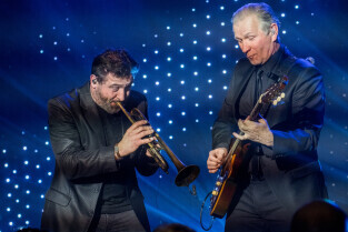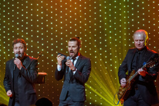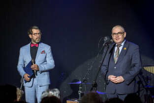 Gdańsk, Polska Filharmonia Bałtycka. Koncert dla Babci i Dziadka – Anna Wyszkoni akustycznie. Nz. Andrzej Stawicki i wiceprezydent Gdańska Piotr Kowalczuk