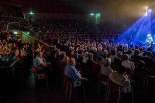 Gdańsk, Polska Filharmonia Bałtycka. Koncert dla Babci i Dziadka – Anna Wyszkoni akustycznie. Nz. Aleksander Żubrys - przewodniczący Rady Seniorów w Gdańsku