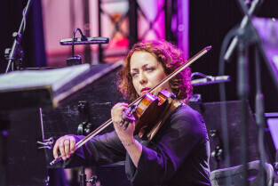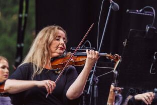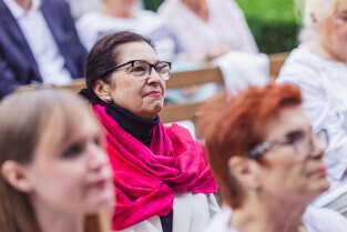 Gdańsk. Koncert inauguracyjny Festiwalu Mozartiana w Parku Oliwskim na dziedzińcu Pałacu Opatów. Nz. posłanka Małgorzata Chmiel