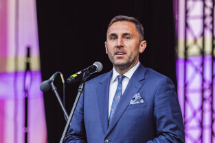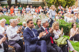 Gdańsk. Koncert inauguracyjny Festiwalu Mozartiana w Parku Oliwskim na dziedzińcu Pałacu Opatów. Nz. Z-ca Prezydenta ds. przedsiębiorczości i ochrony klimatu Piotr Borawski.