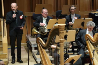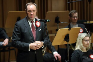 Gdańsk. Koncert na 100-lecie z udziałem Leszka Możdżera, Agnieszki Duczmal i Mirosława Baki. Nz. Marszałek Województwa Pomorskiego Mieczysław Struk.