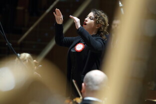 Gdańsk. Koncert na 100-lecie z udziałem Leszka Możdżera, Agnieszki Duczmal i Mirosława Baki. Nz. Dyrygentka Agnieszka Duczmal.