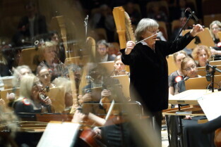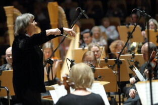 Gdańsk. Koncert na 100-lecie z udziałem Leszka Możdżera, Agnieszki Duczmal i Mirosława Baki. Nz. Dyrygentka Agnieszka Duczmal.