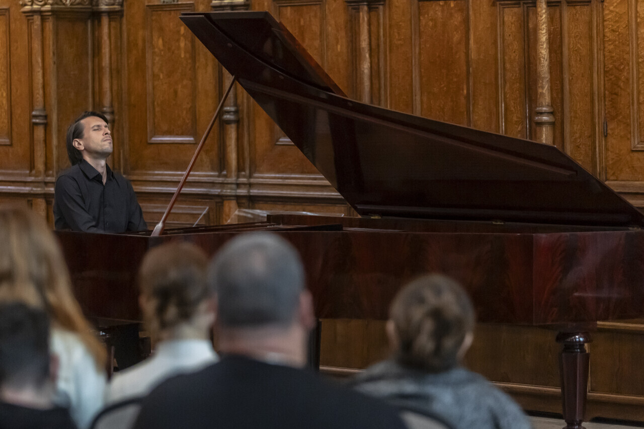Gdańsk. Koncert w Dworze Artusa na najstarszym zachowanym gdańskim fortepianie w wykonaniu pianisty Macieja Ganskiego. Historia tego instrumentu sięga blisko 190 lat.