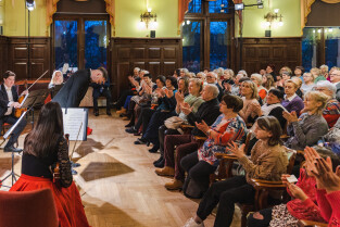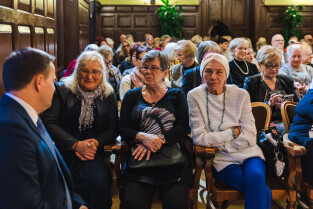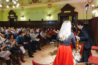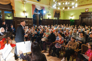 Gdańsk, ul. Wały Jagiellońskie. Koncert z okazji Dnia Babci i Dziadka. Gości i zespół przywitała Przewodnicząca Rady Miasta Gdańska Agnieszka Owczarczak