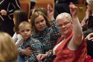 Gdańsk, Filharmonia Bałtycka. "W rytmie Walca". Koncert z okazji Dnia Babci i Dziadka w wykonaniu Bałtyckiej Filharmonii Młodych. Nz. Prezydent Gdańska Paweł Adamowicz