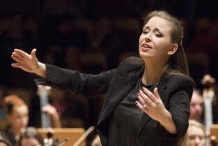 Gdańsk, Filharmonia Bałtycka. "W rytmie Walca". Koncert z okazji Dnia Babci i Dziadka w wykonaniu Bałtyckiej Filharmonii Młodych. Nz. Dyrygent Sylwia Anna Janiak-Kobylińska