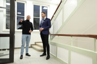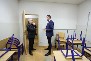 Gdańsk. Kończy się remont Państwowej Szkoły Muzycznej I stopnia w Gdańsku. Nz. Sebastian Hinc - kierownik projektu z ramienia DRMG i wiceprezydent Gdańska Piotr Grzelak.