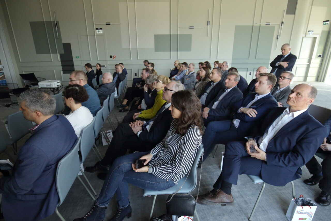 Gdańsk. Konferencja „Elektromobilność” . Prelekcje wygłosił Tammo Voigt – pełnomocnik Daimler Buses ds. eMobility, reprezentant w International Association of Public Transport (UITP), tłumaczył Adam Kempiński, Dyrektor Działu Sprzedaży Autobusów Miejskich i Zamówień Publicznych EvoBus Polska Sp. z.o.o.