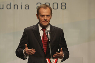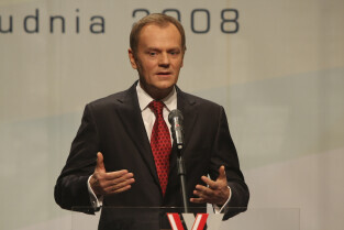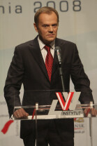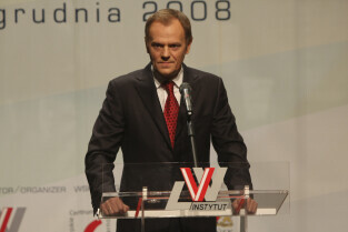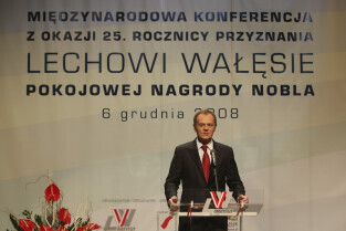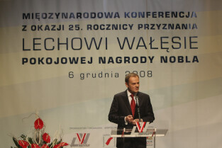 Konferencja Solidarność dla Przyszłości w ramach obchodów 25-lecia przyznania Lechowi Wałęsie Pokojowej Nagrody Nobla. Nz. Donald Tusk