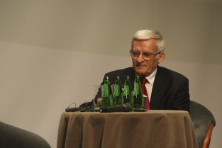 Konferencja Solidarność dla Przyszłości w ramach obchodów 25-lecia przyznania Lechowi Wałęsie Pokojowej Nagrody Nobla. Nz. Jerzy Buzek oraz uczczenie minutą ciszy ś.p. Bronisława Geremka