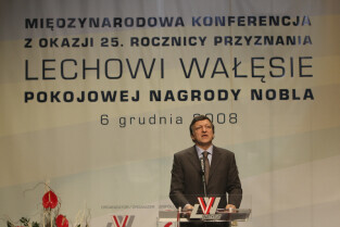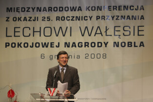 Konferencja Solidarność dla Przyszłości w ramach obchodów 25-lecia przyznania Lechowi Wałęsie Pokojowej Nagrody Nobla. Nz. Jose Manuel Barroso