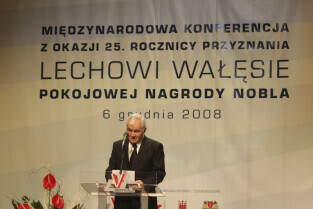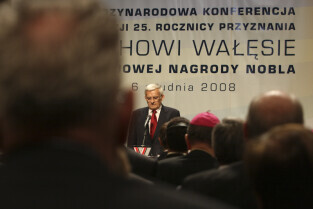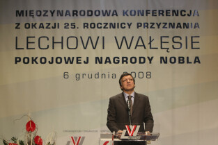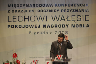 Konferencja Solidarność dla Przyszłości w ramach obchodów 25-lecia przyznania Lechowi Wałęsie Pokojowej Nagrody Nobla. Nz. Jan Krzysztof Bielecki