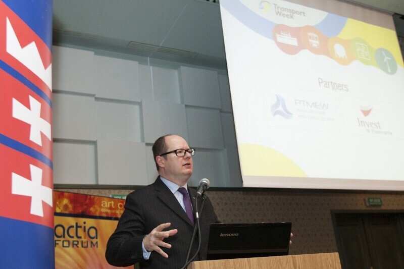 Gdańsk, Filharmonia Bałtycka. Konferencja Transport Week 2014. Nz. Prezydent Gdańska Paweł Adamowicz