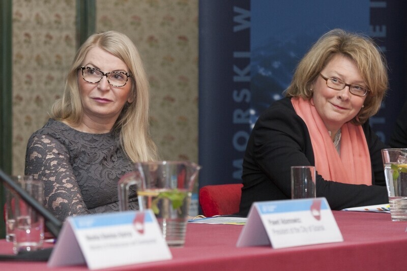 Gdańsk, Filharmonia Bałtycka. Konferencja Transport Week 2014. Nz. od lewej: Prezes Zarządu Morskiego Portu Gdańsk SA Dorota Raben i Sekretarz Generalny European Sea Ports Organisation Isabelle Ryckbost