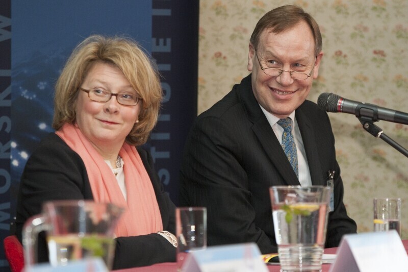 Gdańsk, Filharmonia Bałtycka. Konferencja Transport Week 2014. Nz. Sekretarz Generalny European Sea Ports Organisation Isabelle Ryckbost i Dyrektor Biura Współpracy Zagranicznej, Marketingu i Promocji ZMPG SA Julian Skelnik