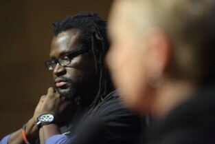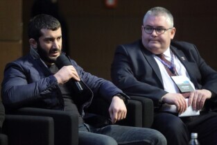 Europejskie Centrum Solidarności, Konferencja "Miasta Otwarte". Dzień ostatni, podsumowanie konferencji i paneli tematycznych. Nz Mamed Khalidov, polski zawodnik mieszanych sztuk walki (MMA) i Wiceprezydent Gdańska Piotr Kowalczuk.