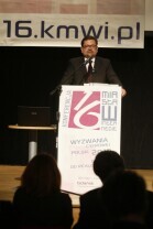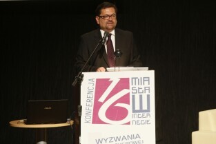 Gdańsk, Filharmonia Bałtycka. Konferencja "Miasta w Internecie" poświęcona roli internetu w działalności samorządów. Podczas konferencji wręczono nagrody "Złota@ 2012 - Samorządowy Lider Cyfrowej Polski", które w otrzymali: Urząd Miejski w Wolsztynie (kategoria gmin miejsko-wiejskich), Urząd Miasta Legionowo (kategoria gmin miejskich), Urząd Miasta Tychy (kategoria gmin miejskich dużych). Nz. Prezydent Gdańska Paweł Adamowicz