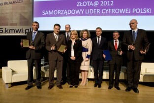 Gdańsk, Filharmonia Bałtycka. Konferencja "Miasta w Internecie" poświęcona roli internetu w działalności samorządów. Podczas konferencji wręczono nagrody "Złota@ 2012 - Samorządowy Lider Cyfrowej Polski", które w otrzymali: Urząd Miejski w Wolsztynie (kategoria gmin miejsko-wiejskich), Urząd Miasta Legionowo (kategoria gmin miejskich), Urząd Miasta Tychy (kategoria gmin miejskich dużych)