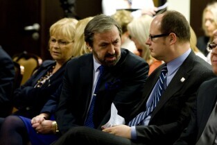 Konferencja "Nowoczesny Urząd Pracy", poświęcona przyszłości Publicznych Służb Zatrudnienia. przyszłości Publicznych Służb Zatrudnienia. Gdańsk, Hotel Radisson Blu. Nz. Prezydent Gdańska Paweł Adamowicz (po prawej) i Dyrektor Powiatowego Urzędu Pracy w Gdańsku Roland Budnik