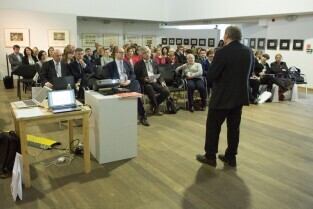 Konferencja poświęcona ekonomii społecznej: "Społecznie odpowiedzialne terytorium". Sopot, Państwowa Galeria Sztuki. Nz. prof. Jacques Defourny (Uniwersytet Liege)