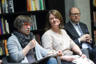 Gdańsk, Europejskie Centru Solidarności. Konferencja dotycząca rozpoczęcia oficjalnych obchodów 100-lecia praw wyborczych kobiet. Nz. Elżbieta Rutkowska, Patrycja Medowska i Prezydent Gdańska Paweł Adamowicz.
