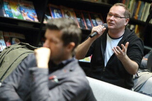 Gdańsk, Europejskie Centru Solidarności. Konferencja dotycząca rozpoczęcia oficjalnych obchodów 100-lecia praw wyborczych kobiet. Nz. Patrycja Medowska-ECS, Prezydent Gdańska Paweł Adamowicz i Paweł Orłowski-Członek Zarządu Województwa Pomorskiego.