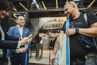 Gdańsk, ECS. Konferencja dotycząca wystawy "Stocznia". Nz. dr Konrad Knoch
