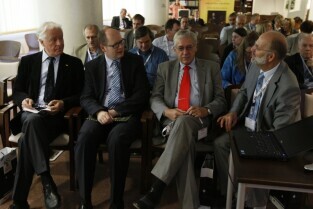 Konferencja naukowa zorganizowana w 400-lecie urodzin Jana Heweliusza. Gdańsk, Biblioteka PAN. Nz. honorowi obywatele Gdańska: Andrzej Januszajtis (po lewej) i Andrzej Zbierski