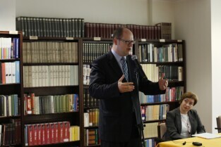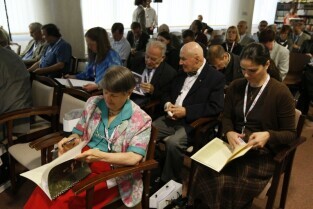 Konferencja naukowa zorganizowana w 400-lecie urodzin Jana Heweliusza. Gdańsk, Biblioteka PAN. Nz. prof. Jerzy Limon