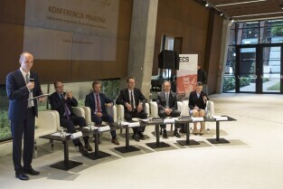 Gdańsk, ECS. Konferencja prasowa ThyssenKrupp, podczas której oficjalnie ogłoszono powstanie inwestycji z sektora usług wspólnych w Gdańsk. Nz. Członek Zarządu Woj. Pomorskiego Ryszard Świlski