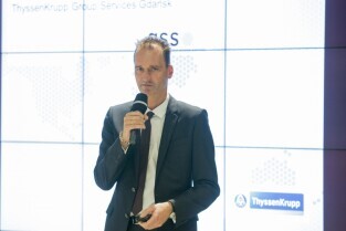 Gdańsk, ECS. Konferencja prasowa ThyssenKrupp, podczas której oficjalnie ogłoszono powstanie inwestycji z sektora usług wspólnych w Gdańsk. Nz. Robert Góra (Head of ThyssenKrupp Group Services Gdańsk)