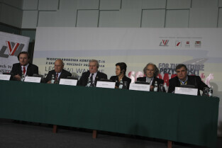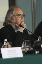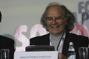 Konferencja prasowa poświęcona obchodom 25-lecia przyznania Lechowi Wałęsie Pokojowej Nagrody Nobla. Gdańsk, Filharmonia Bałtycka. 05.12.2008. Nz. Adolfo Perez Esquivel (laureat Pokojowej Nagrody Nobla)