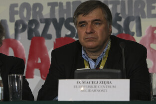Konferencja prasowa poświęcona obchodom 25-lecia przyznania Lechowi Wałęsie Pokojowej Nagrody Nobla. Gdańsk, Filharmonia Bałtycka. 05.12.2008. Nz. O. Maciej Zięba (ECS)