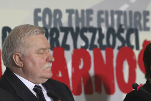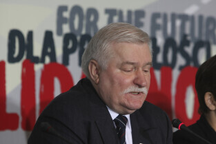 Konferencja prasowa poświęcona obchodom 25-lecia przyznania Lechowi Wałęsie Pokojowej Nagrody Nobla. Gdańsk, Filharmonia Bałtycka. 05.12.2008. Nz. Lech Wałęsa (B. Prezydent RP)
