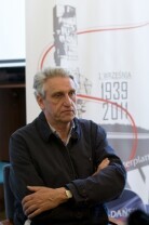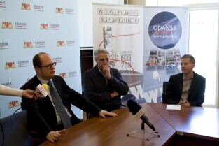 Konferencja prasowa z udziałem Bogusława Wołoszańskiego i Prezydenta Gdańska Pawła Adamowicza poświęcona organizacji historycznej inscenizacji podczas obchodów rocznicy wybuchu II Wojny Światowej