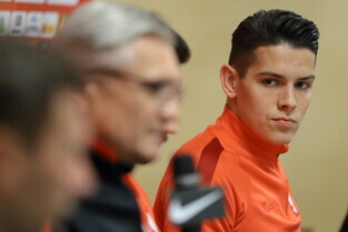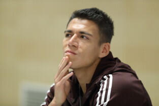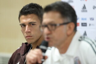 Gdańsk. Konferencje prasowe i treningi przed meczem Polska-Meksyk. Konferencja prasowa reprezentacji Meksyku. Nz. Hector Moreno.