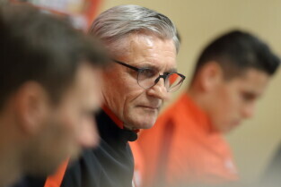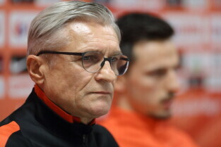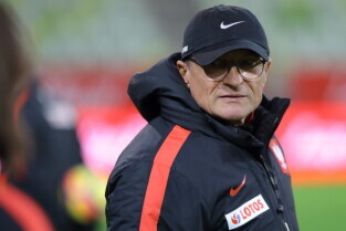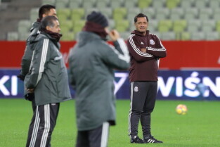 Gdańsk. Konferencje prasowe i treningi przed meczem Polska-Meksyk. Nz. Trener-Bogusław Kaczmarek.