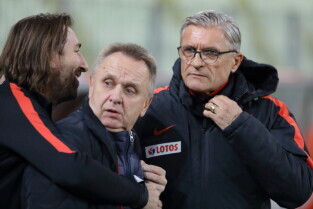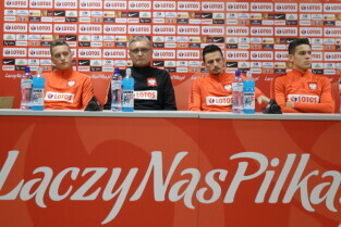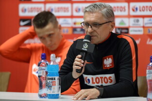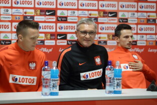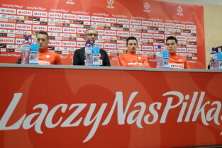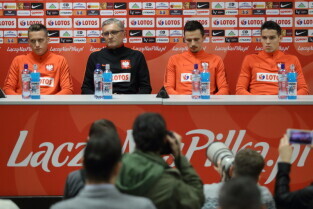 Gdańsk. Konferencje prasowe i treningi przed meczem Polska-Meksyk. Konferencja prasowa reprezentacji Polski.