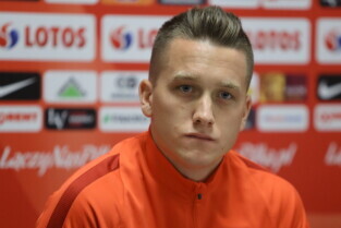 Gdańsk. Konferencje prasowe i treningi przed meczem Polska-Meksyk. Konferencja prasowa reprezentacji Polski. Nz. Piotr Zieliński.