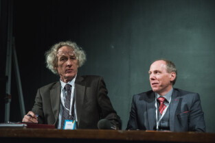 Gdańsk. Teatr Wybrzeże. Kongres Kultury Pomorskiej. Nz. Władysław Zawistowski (dyrektor Departamentu Kultury Urzędu Marszałkowskiego Województwa Pomorskiego) i prof. dr hab. Cezary Obracht-Prondzyński (prezes Instytutu Kaszubskiego)