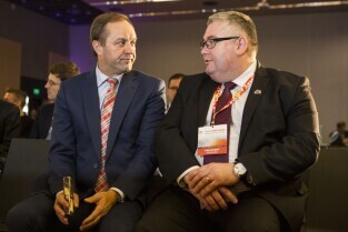 Gdańsk, Amber Expo. Międzynarodowy Kongres Smart Metropolia. Nz. Podsekretarz Stanu w Ministerstwie Rozwoju Regionalnego Paweł Orłowski i Z-ca Prezydenta Gdańska Piotr Kowalczuk