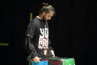 Gdańsk. Scena Stara Apteka, Teatr Dada von Bzdülöw. Koniec wielkiej wojny - próba medialna. Nz. Reżyser Leszek Bzdyl.